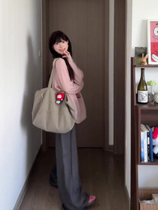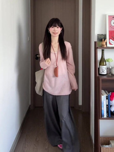 韩系U领针织衫上衣2025早秋季新款软糯温柔慵懒风套头长袖小衫女