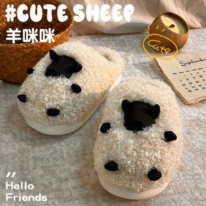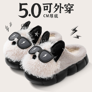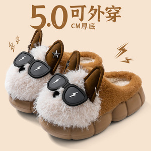 可爱眼镜小狗棉拖鞋女冬季室内居家厚底增高防滑毛绒保暖包头拖鞋