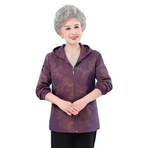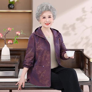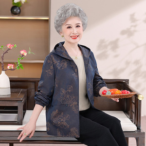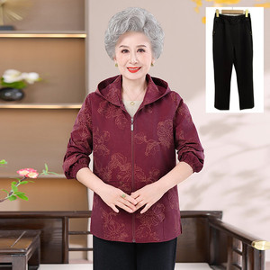 老年人秋装女奶奶风衣外套中老年妈妈秋季休闲连帽气质宽松上衣服