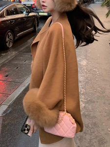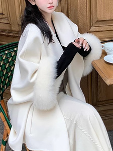 法兰西式冬日我的大衣双面羊毛呢大衣外套秋冬狐狸毛外套中长款女