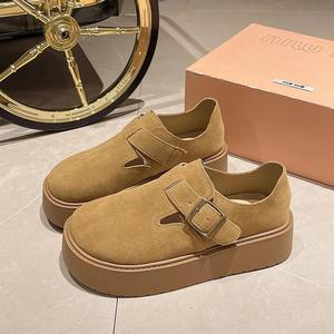 复古全包勃肯鞋女2025秋季新款厚底松糕增高一脚蹬乐福单鞋子