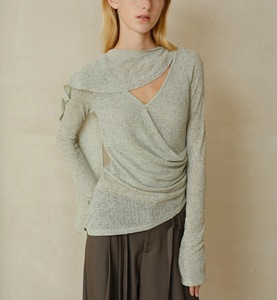 someone sometime 原创镂空麻交叉垂荡V领连身围巾领喇叭长袖衣