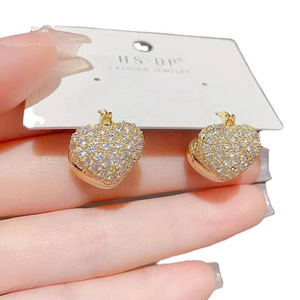 微镶锆石爱心珍珠双面耳扣女网红法式爆款气质高级感满钻耳钉轻奢