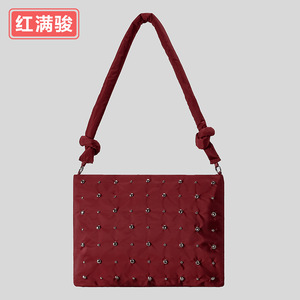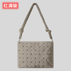 简约14寸笔记本平板电脑包11寸iPad苹果内胆包铆钉单肩斜挎包女