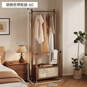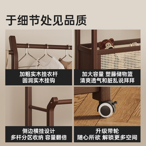 实木衣架落地衣帽架卧室可移动家用房间脏衣篓挂衣架多功能挂包架