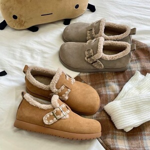 行走小棉袄~~2025秋冬新款加绒扣带保暖羊羔毛毛勃肯鞋女乐福鞋