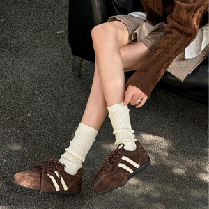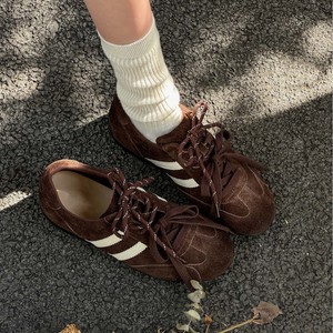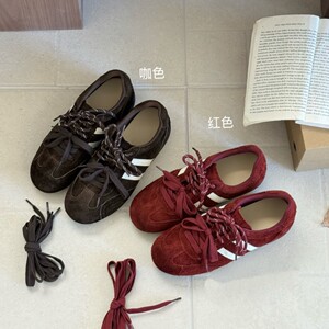 2025秋季新款复古真皮运动德训鞋女双色系带舒适软底阿甘鞋女