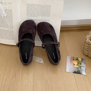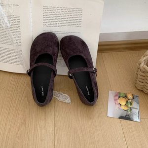 复古晚晚风绒面玛丽珍鞋子女秋冬新款红色芭蕾舞浅口软平底单鞋女