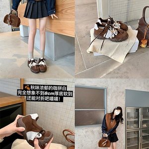 运动鞋女~8cm内增高月牙厚底鸳鸯鞋带运动休闲鞋女2025秋季德训鞋