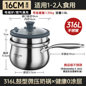 316L不锈钢奶锅微压锅汤锅2025新款辅食蒸煮锅食品级不锈钢大肚锅