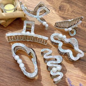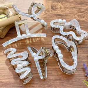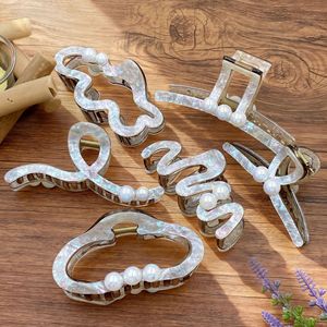 韩版珍珠云朵抓夹高级感时尚百搭鲨鱼夹简约大号后脑勺盘发夹发抓