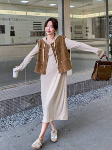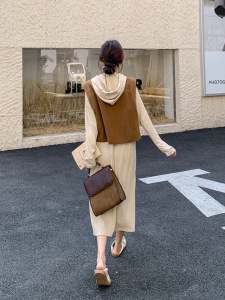 咖色 (马甲+卫衣裙)
