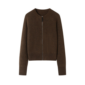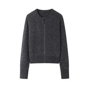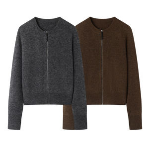 2025秋季新款百搭圆领拉链圆领长袖针织衫开衫毛衣外套女潮