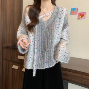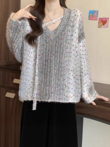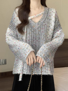 2025秋季新款女装韩系胖MM女士针织衫软糯慵懒风长袖上衣女A7448