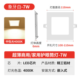 方形【薄至0.6cm】7W-灯面9×9开孔7.5cm