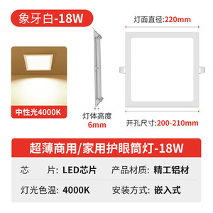 方形【薄至0.6cm】18W-灯面9×9开孔7.5cm