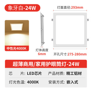LED正方形筒灯嵌入式客厅18W24瓦超薄四方吊顶天花孔灯厨卫面板灯
