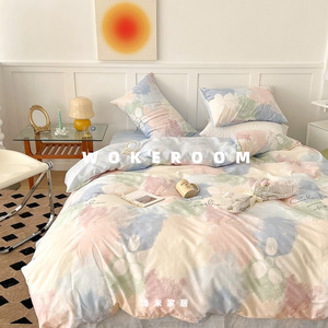CW简约学生四件套床上用品纯色寝室工厂亲肤磨毛S宿舍床单三件套