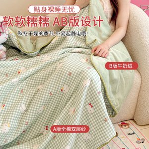 全棉双层纱牛奶绒毛毯加厚空调毯全棉毯子办公室午睡披肩沙发盖毯