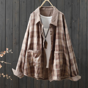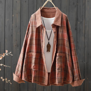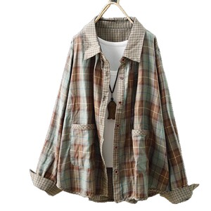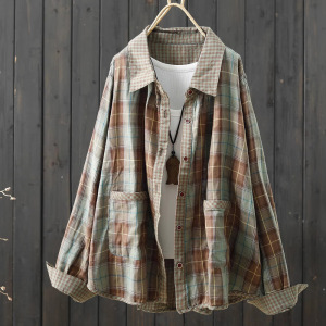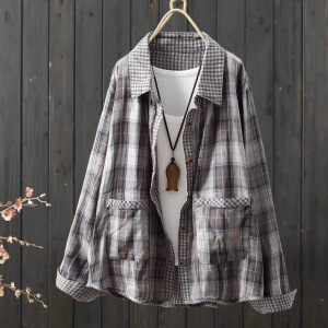 复古文艺休闲格子衬衫女长袖秋季2025年新款百搭衬衣开衫薄外套女