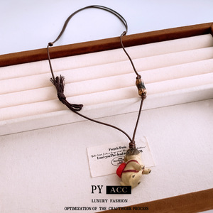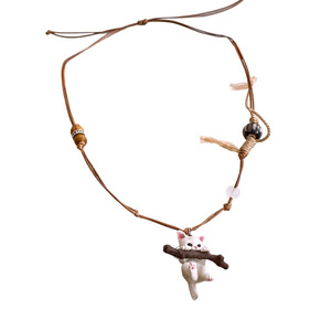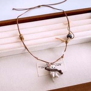 蜡绳小猫木珠陶瓷拉伸项链小众独特趣味毛衣链个性复古创意风项饰