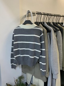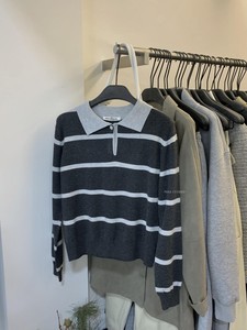 MISS密思家 秋季复古经典条纹撞色百搭显瘦Polo领套头毛衣女2265