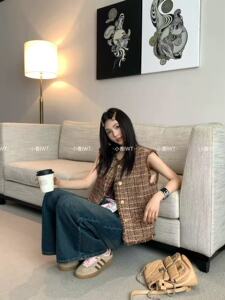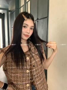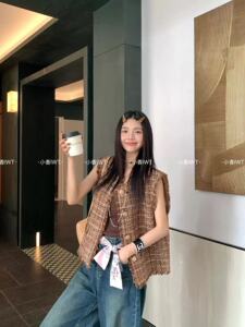 毛须边圆领小香风羊毛马夹女欧货2025秋季新款显瘦单排扣马甲外套