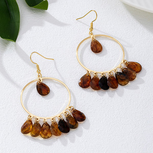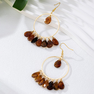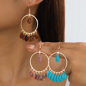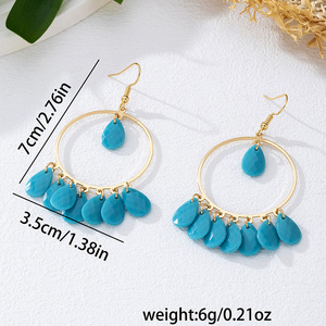 欧美跨境潮流新款复古优雅波西米亚风水滴吊坠女士耳钉圆圈耳环