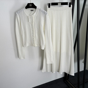 2025秋冬新款针织套装珍珠纽扣镂空长袖针织开衫+针织高腰半裙女