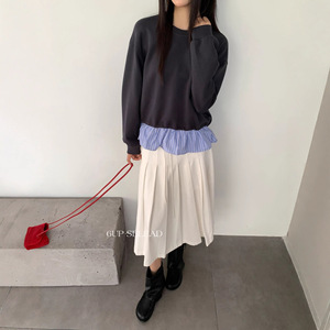 6UP韩系秋假两件条纹拼接卫衣女2025广州13行新款宽松慵懒50025