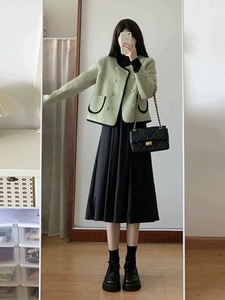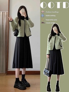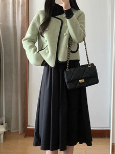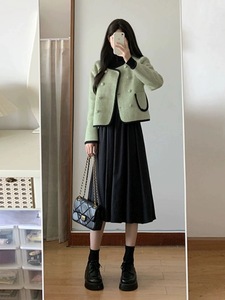 法式气质绿色小香风外套女2025年秋冬季加厚呢子高级感夹克上衣女