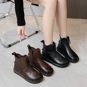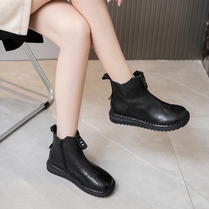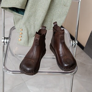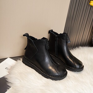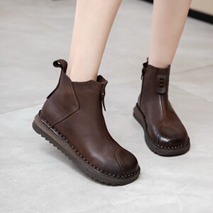 龍林2025冬季新款头层牛皮简约经典百搭短靴坡跟民族风妈妈鞋靴子
