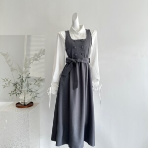 校园风连衣裙长裙2025新款秋冬女背心裙收腰无袖大方得体两件套