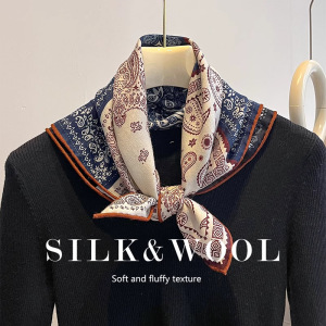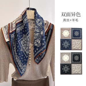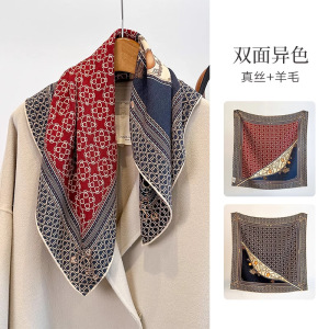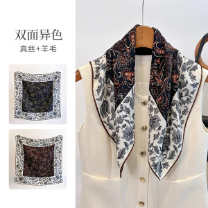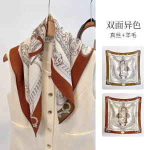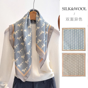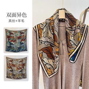 桑蚕丝真丝羊毛65丝毛混纺方巾合集百搭丝巾女春秋季复古经典高端