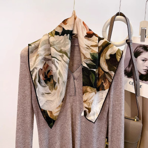 玫瑰咖啡63*63cm桑蚕丝羊毛