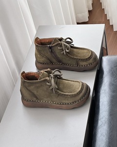 龍林2025冬季新款牛巴皮休闲舒适百搭单靴系带通勤复古风休闲女靴