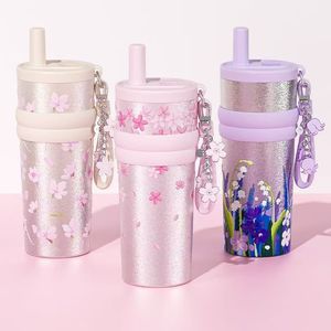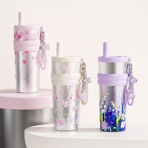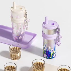 新款真空纯钛双层保温杯男女士时尚繁花咖啡杯高端高颜值钛杯批发
