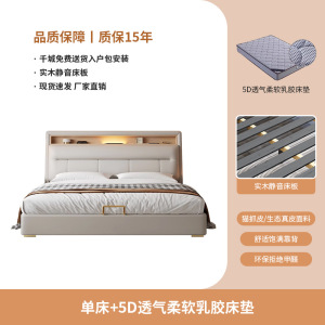 轻奢皮床+5D除菌防螨乳胶床垫+1个床头柜【软硬适中 亲肤透气】