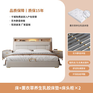 轻奢皮床+薰衣草养生助眠乳胶床垫+2个床头柜【增加深度睡眠】
