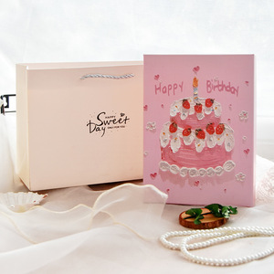 粉色生日蛋糕+礼袋 送拉菲草贺卡-