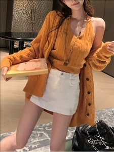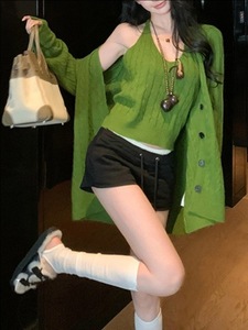 2025早秋慵懒气质超好看漂亮上衣时尚设计绿色针织衫吊带两件套装
