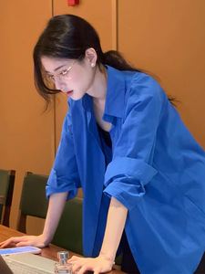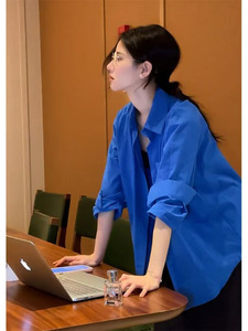 克莱因蓝色衬衫上衣外套开衫女2025新款秋季长袖衬衣法式气质宽松