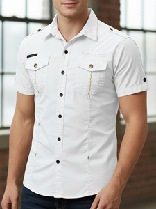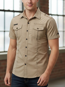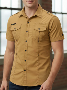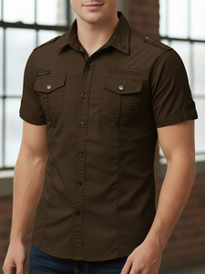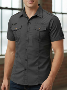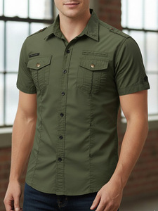 外贸男装军旅风欧美短袖衬衫男士纯色纯棉户外工装衬衣 多色现货
