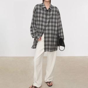 CHIC重磅对格/定织_限量法兰绒渐变格纹纸片人衬衫2025秋季新