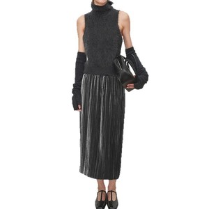 【复古中裙】獨家定染锡器灰-立体压褶真丝丝绒