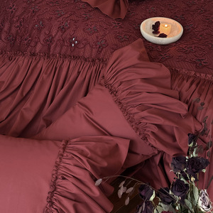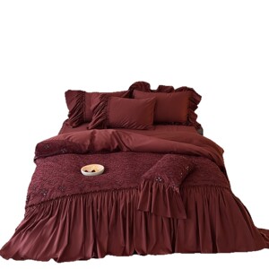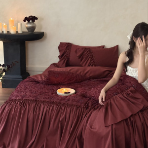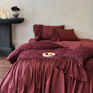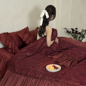 中式红色婚庆长绒棉全棉四件套复古刺绣床上用品纯棉被套床裙套件
