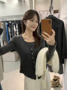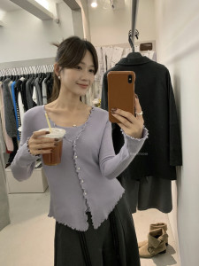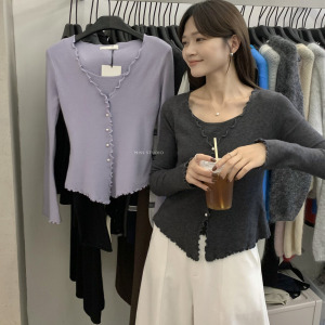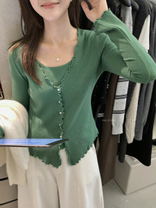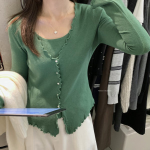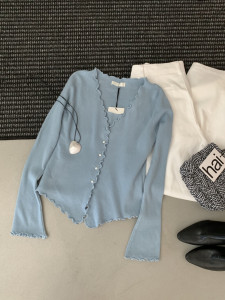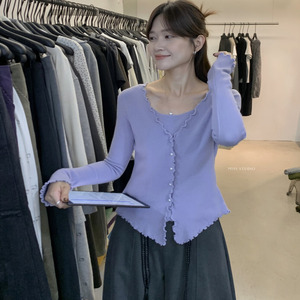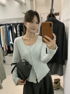 miss密思家温柔甜美波浪边假两件针织衫女2025秋季修身显瘦上衣