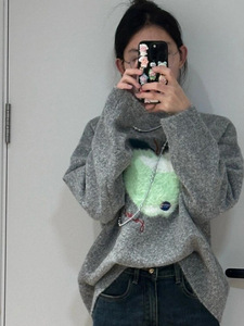 灰色苹果慵懒提花圆领套头毛衣2025秋冬小个子宽松正肩针织衫