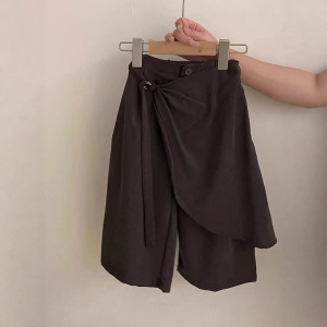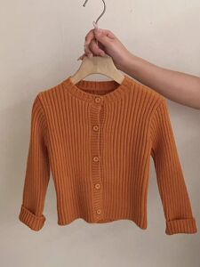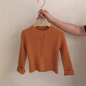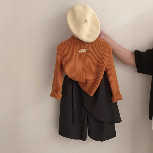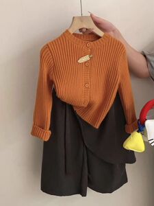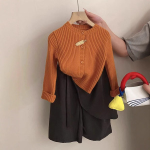 韩国童装2025秋季新款女童橘色坑条纹长袖针织开衫女孩屁帘阔腿裤