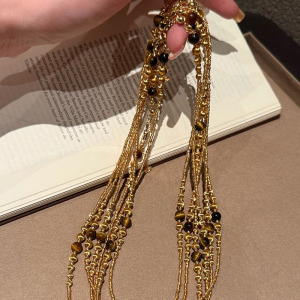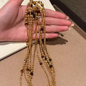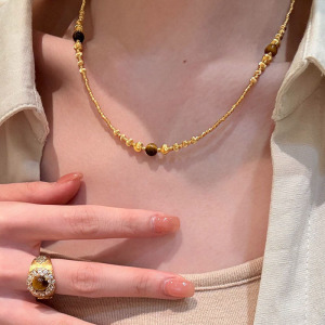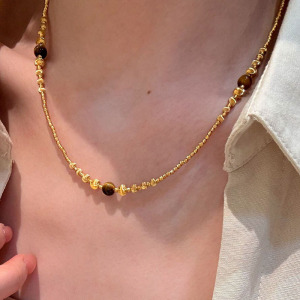 小红书爆款虎眼石串珠项链高级配饰轻奢小众毛衣链锁骨链一件代发